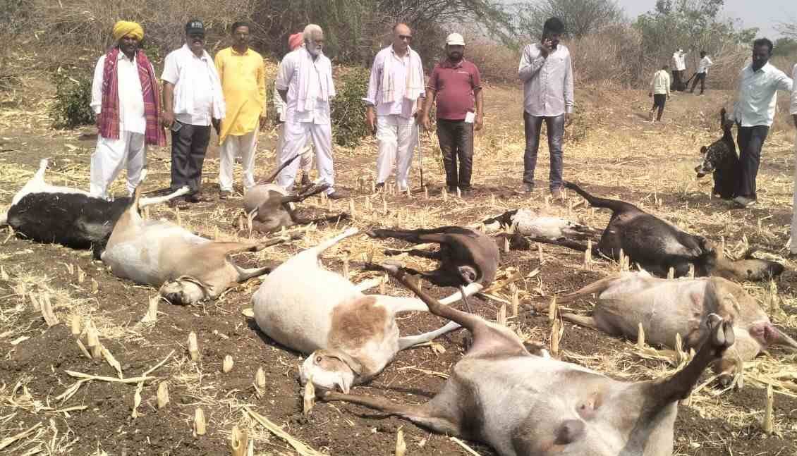 जळगाव जिल्ह्यातील चाळीसगाव तालुक्यातील वाघळी परिसरात मेंढपाळांनी चराईसाठी आणलेल्या तब्बल 30-35 मेंढ्या उष्माघाताने दगावल्याचा धक्कादायक प्रकार समोर आला आहे. या घटनेने मेंढपाळांवर उपासमारीची वेळ येऊन ठेपली आहे. अशातच मेंढपाळांनी आज चाळीसगावचे भाजपाचे आमदार मंगेश चव्हाण यांची भेट घेतली. आमदार मंगेश यांनी तात्काळ प्रशासनाला पंचनाम्यासाठी निर्देश दिले आहे. यावर मेंढपाळांनी त्यांचे आभार सुद्धा मागितले.