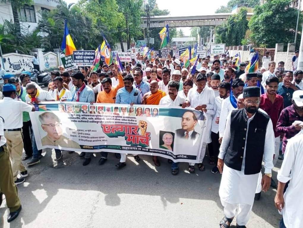 नांदेड/प्रतिनिधी – फुले शाहू आंबेडकरांच्या पुरोगामी महाराष्ट्रात मुस्लिम अल्पसंख्यांक, मागासवर्गीय, दलित, भटके, आदिवासी, ओबीसी, यांच्यावरील पोलीस व धर्मांध जातीयवादी शक्तीकडून होत असलेल्या अत्याचाराच्या विरोधात, वंचित बहुजन आघाडीच्यावतीने एल्गार मार्चचे आयोजन करण्यात आले होते,