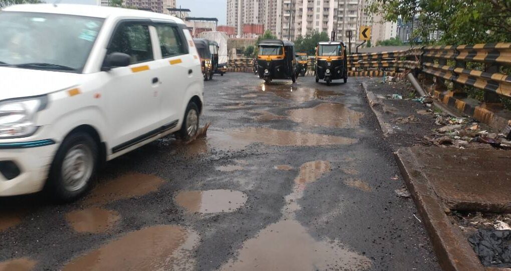 DESK MARATHI NEWS. कल्याण/प्रतिनिधी – नुकत्याच सुरू झालेल्या पावसामुळे शहाड उड्डाण पुलावर मोठ्या प्रमाणात खड्डे पडले असून त्यामुळे वाहन चालक