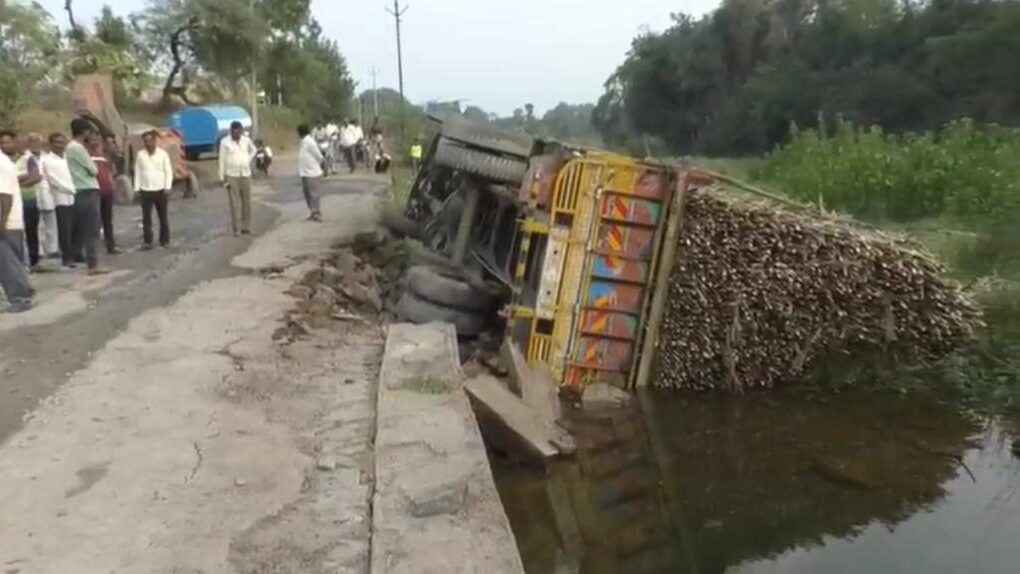 नेशन न्यूज मराठी ऑनलाइन टीम. धुळे/प्रतिनिधी– ट्रक चालकाचे वाहनावरील नियंत्रण सुटल्याने फरशी पुलावरून ऊसाचा ट्रक थेट पाण्यात कोसळल्याची घटना घडली