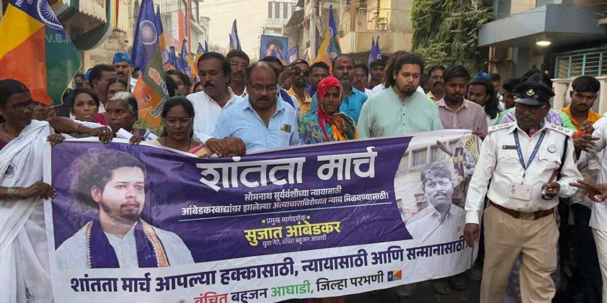 DESK MARATHI NEWS. परभणी/प्रतिनिधी -परभणीत आज सायंकाळी ५ वाजता शनिवार बाजार ते आंदोलन मैदान या मार्गावर भव्य शांतता मार्चला सुरुवात.