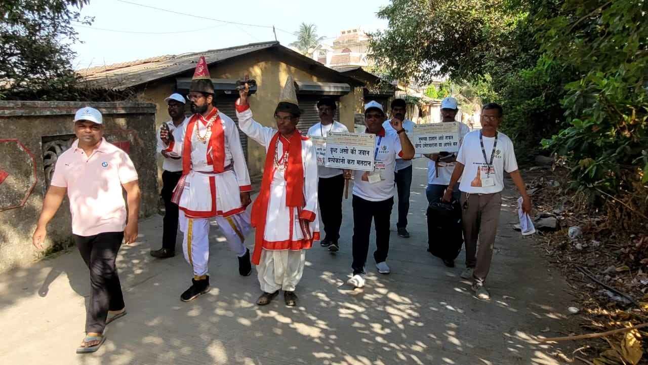 कल्याण/प्रतिनिधी – लोकसभा सार्वत्रिक निवडणूक 2024 अंतर्गत 24 कल्याण लोकसभा या 142 कल्याण पूर्व विघानसभा मतदार संघात मतदार जनजागृतीसाठी विविध जनजागृतीपर स्वीप कार्यक्रमाची अंमलबजावणी ठिकठिकाणी होत आहे. याच अनुषंगाने 142 कल्याण पूर्वचे सहा. निवडणूक निर्णय अधिकारी गोपीनाथ ठोंबरे आणि अति.सहा. निवडणूक निर्णय अधिकारी डॉ. स्वाती घोंगडे यांचे मार्गदर्शनाखाली आज स्वीप पथकातील (मतदार जनजागृतीपथक ) महापालिकेचे शिक्षणाधिकारी तथा नोडल अधिकारी विजय सरकटे (स्वीप) यांच्या अधिपत्याखाली 142 कल्याण पूर्व विधानसभा मतदार संघातील डावलपाडा, वसार, मानेरे, आशेळे, खडेगोळवली या गावात जाऊन वासूदेवांमार्फत पथनाटय सादर करुन मतदारांना मतदान करणेबाबत आवाहन करण्यात आले. सदर ठिकाणी मोठया प्रमाणात नागरिकांनी “आम्ही मतदान करणार आणि तुम्ही पण मतदान करा” अशा घोषणा दिल्या.